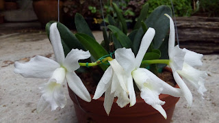 Replantei a Laelia sincorana alba mantendo o cultivo no musgo.