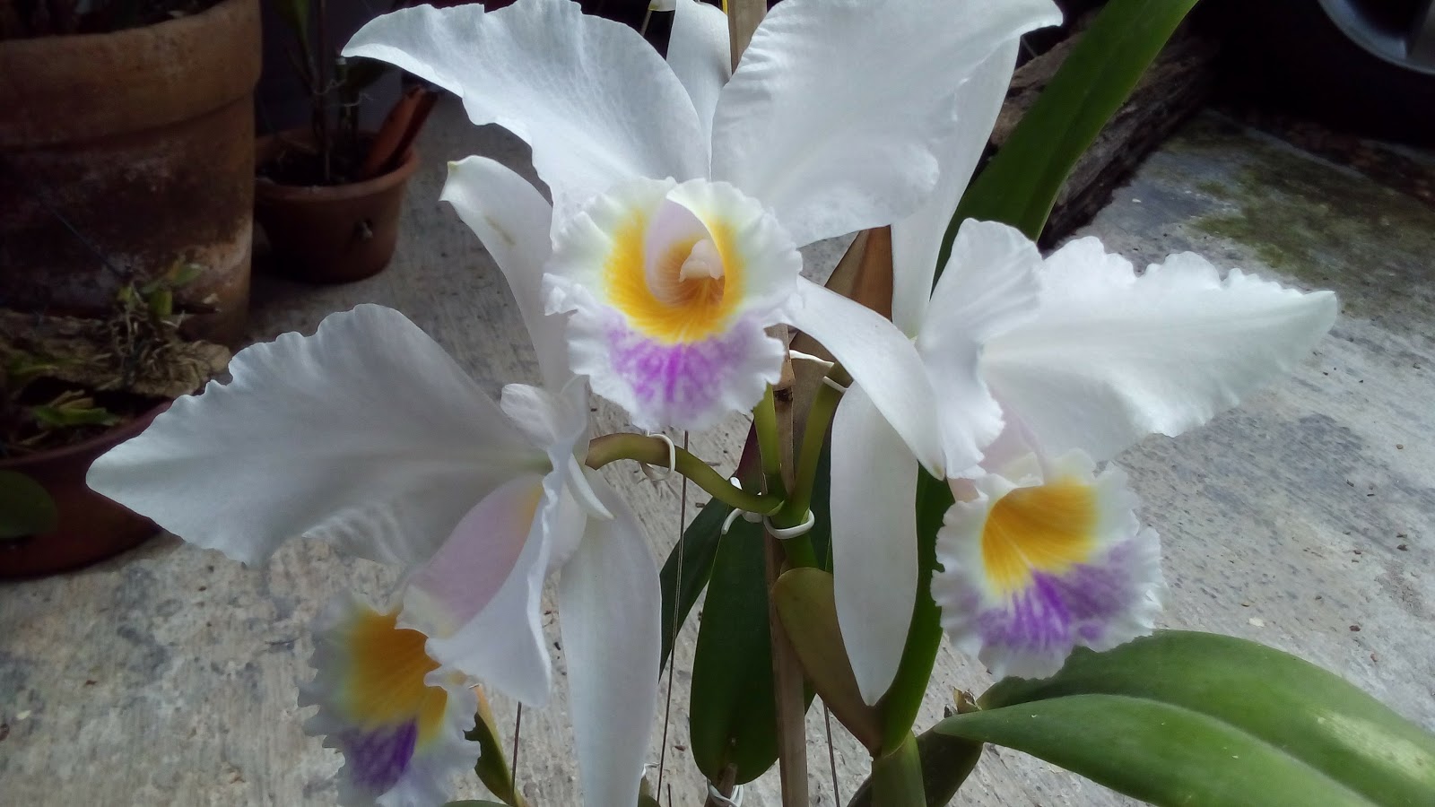 Segunda floração com três unidades bem agradáveis na forma e coloração.