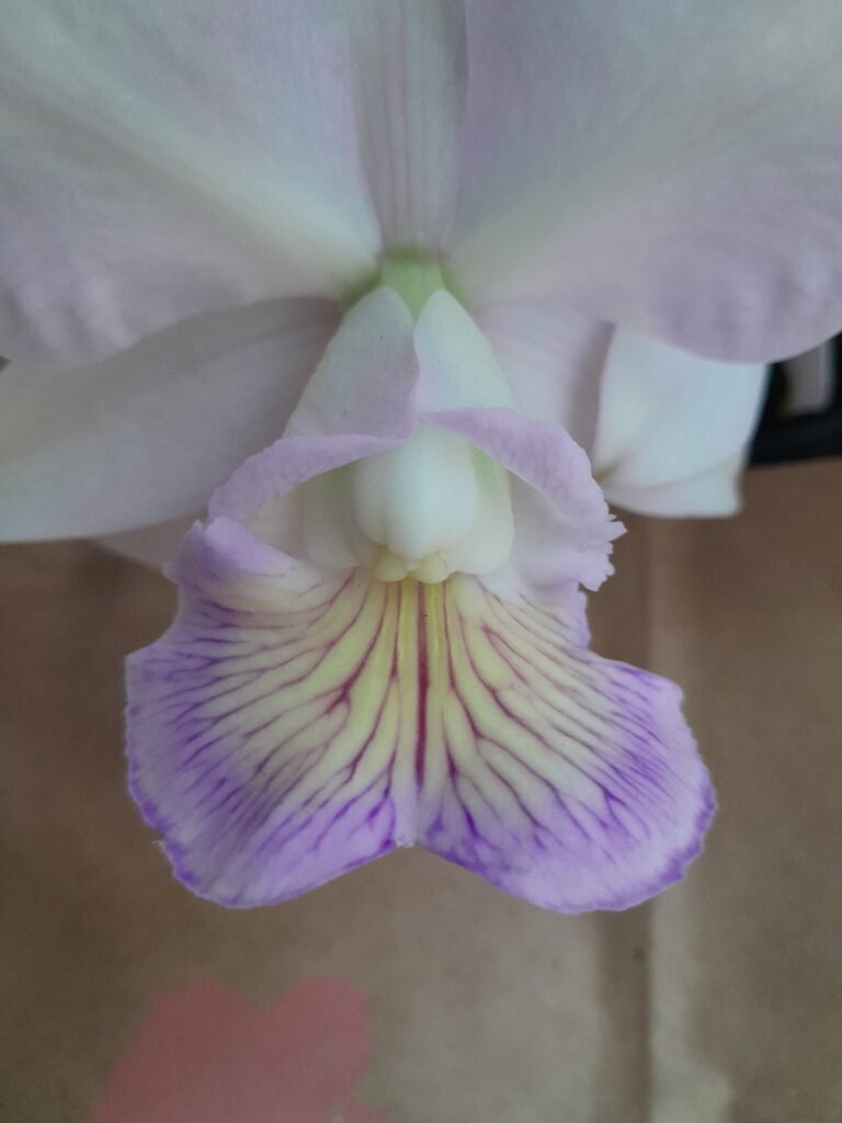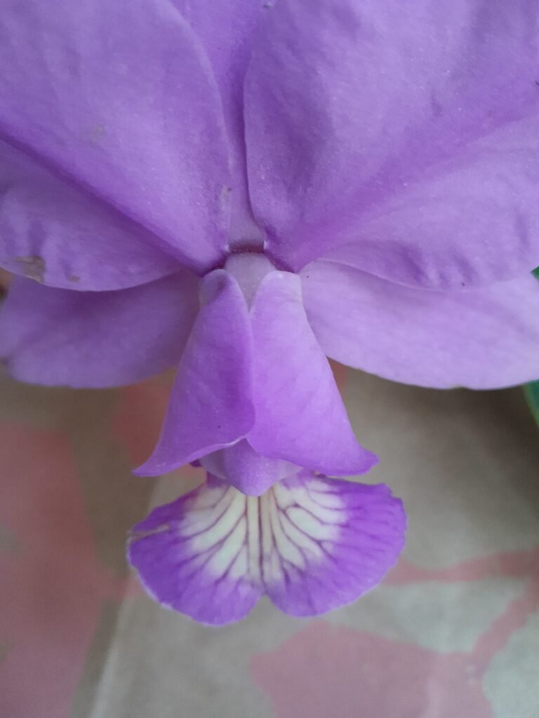 Pelo labelo! Veja o centro do labelo no tom levemente amarelo com borda na cor da flor. Veja também as veias em destaque nele.