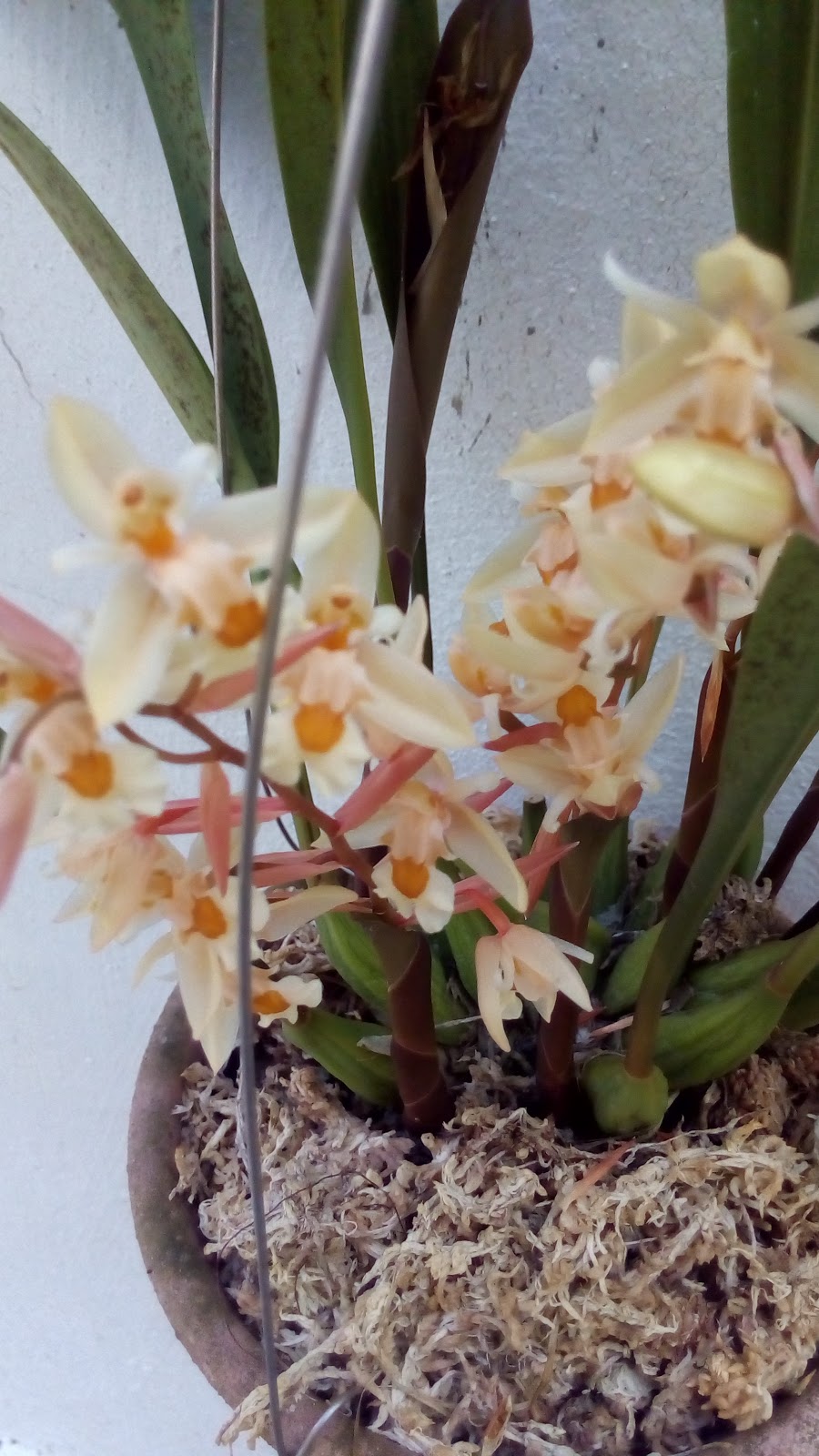 Uma é a Coelogyne sulphurea. Sua cor salmão quase transparente é diferenciada de outras orquídeas. Uma graça!