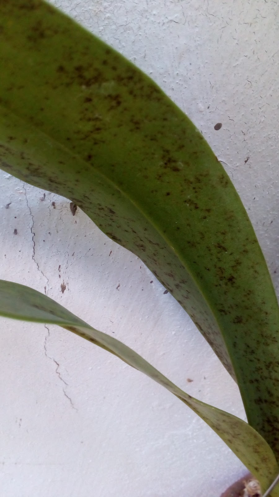 Ambas possuem as manchas na face inferior de suas folhas. Tratei como fungo e depois soube ser delas. Este foi o principal motivo de eu tê-las excluído da coleção, mas depois as mantive. Incomoda saber que suas folhas nunca serão verdes uniformes.