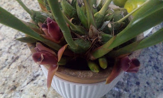 Não tem perfume forte ou acentuado. No final da floração os dois últimos pseudobulbos secaram, perdeu algumas folhas e devo replantá-la num musgo chileno que voltou ao mercado nacional.