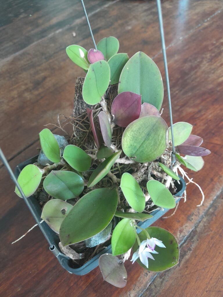 Este ano veio algumas folhas escureceram para o tom do labelo magenta. A botânica fala em pigmentos nos tecidos da planta, então devo respeitar a natureza dela.
