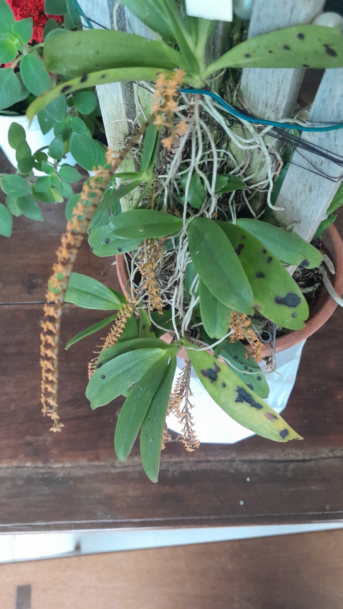 Curiosidade sobre esse exemplar: é uma muda que dei para minha amiga orquidófila há alguns anos atrás. Minha planta mãe faleceu, sucumbiu porque não aceitou ficar num vaso cerâmico com substrato misto.